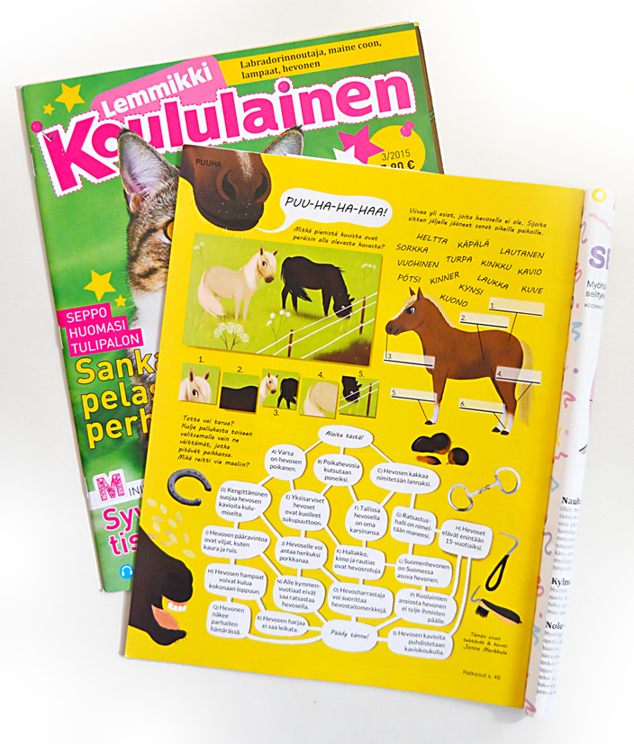 Koululainen -lehdessä oli vuosina 2014-2018 mukana kuvittamani puuhasivu.
