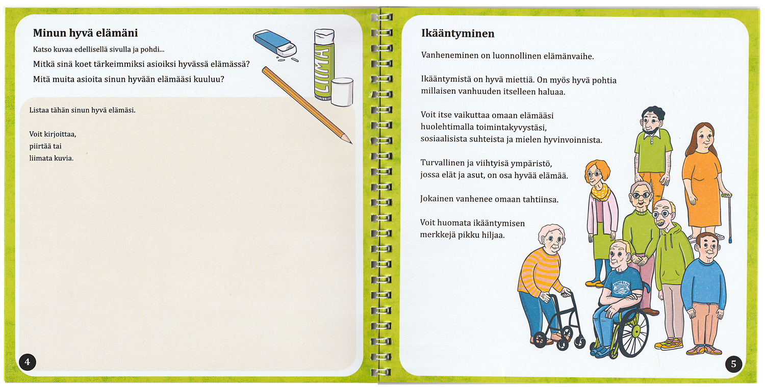 Myös se miltä kuvitus näyttää kertoo omaa viestiään.