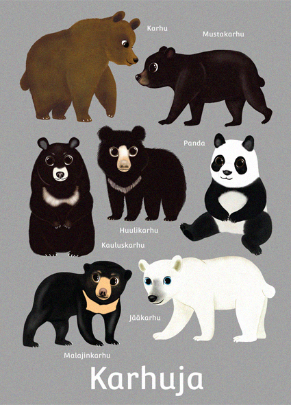 Karhuja 280 kpl, Koiraeläimiä 150 kpl, Kissaeläimiä 150 kpl