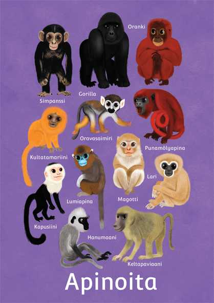 Jäniseläimiä 280 kpl, Apinoita 25 kpl, Oravia 280 kpl