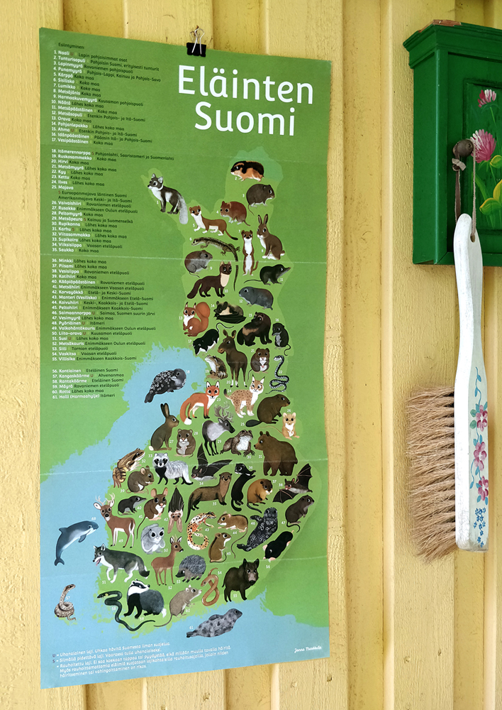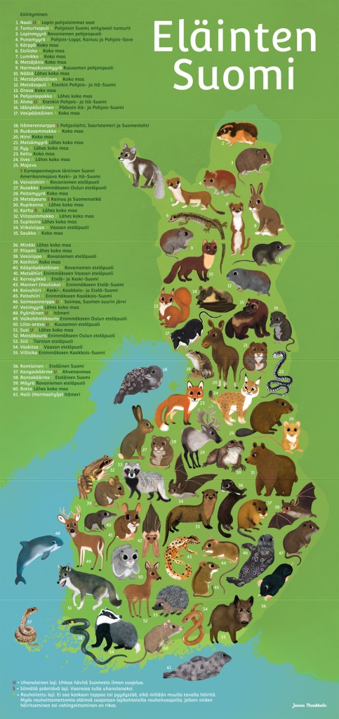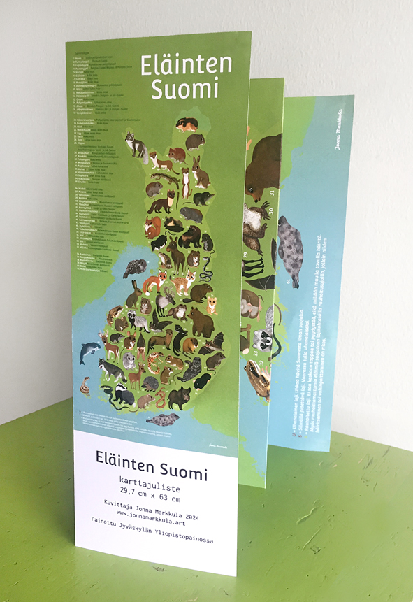 Eläinten Suomi -karttajuliste. Varastossa 15 kpl.