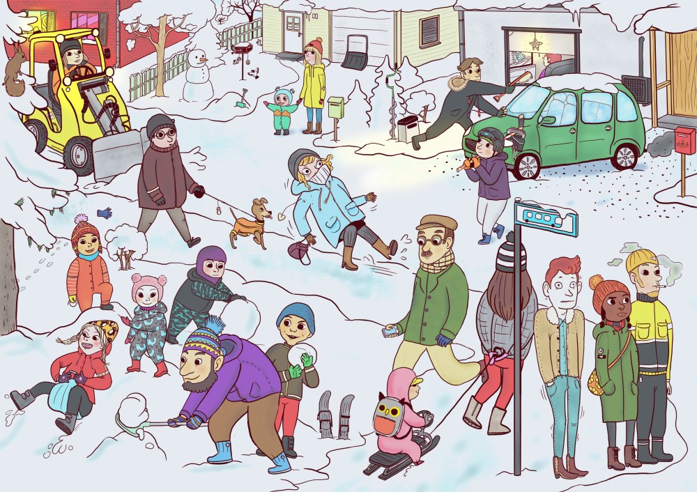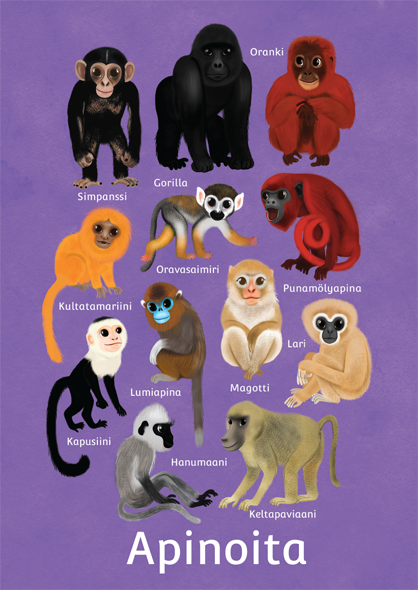 Kuvituksia tutkimukselle jossa kartoitettiin maahanmuuttajien kielitaitoa ja sanavarastoa.