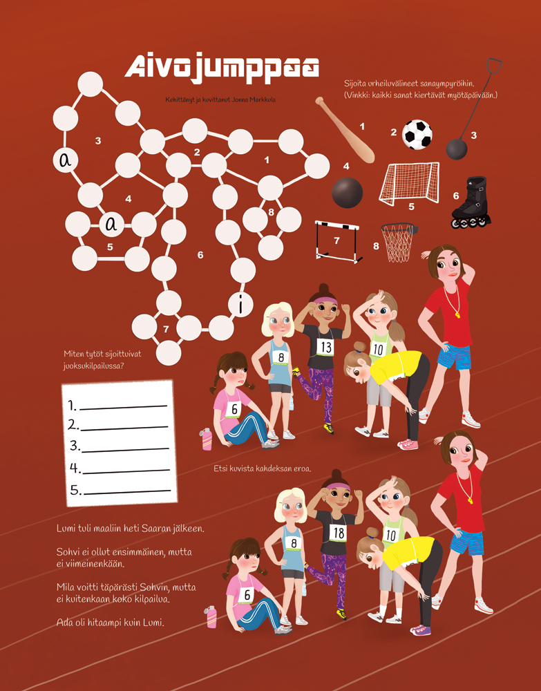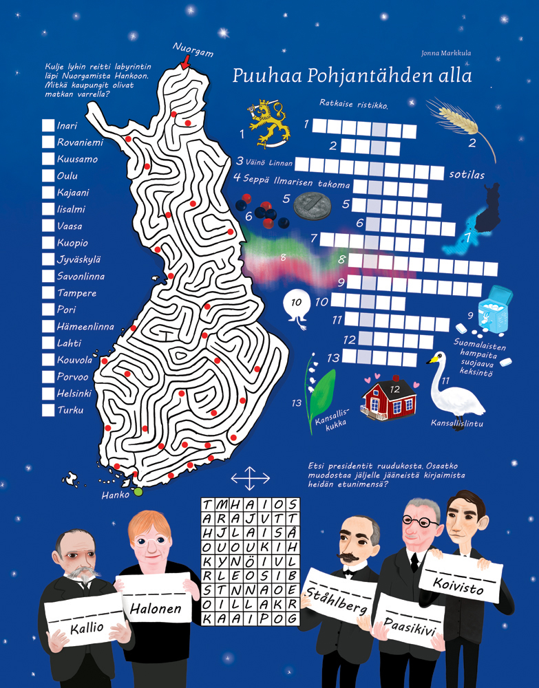 Puuhatehtäväsivuni ilmestyi Koululaisessa 2014-2018. Olen vastannut puuhatehtäväsivujen ulkoasusta ja suunnitellut tehtävien teemat ja sisällöt.